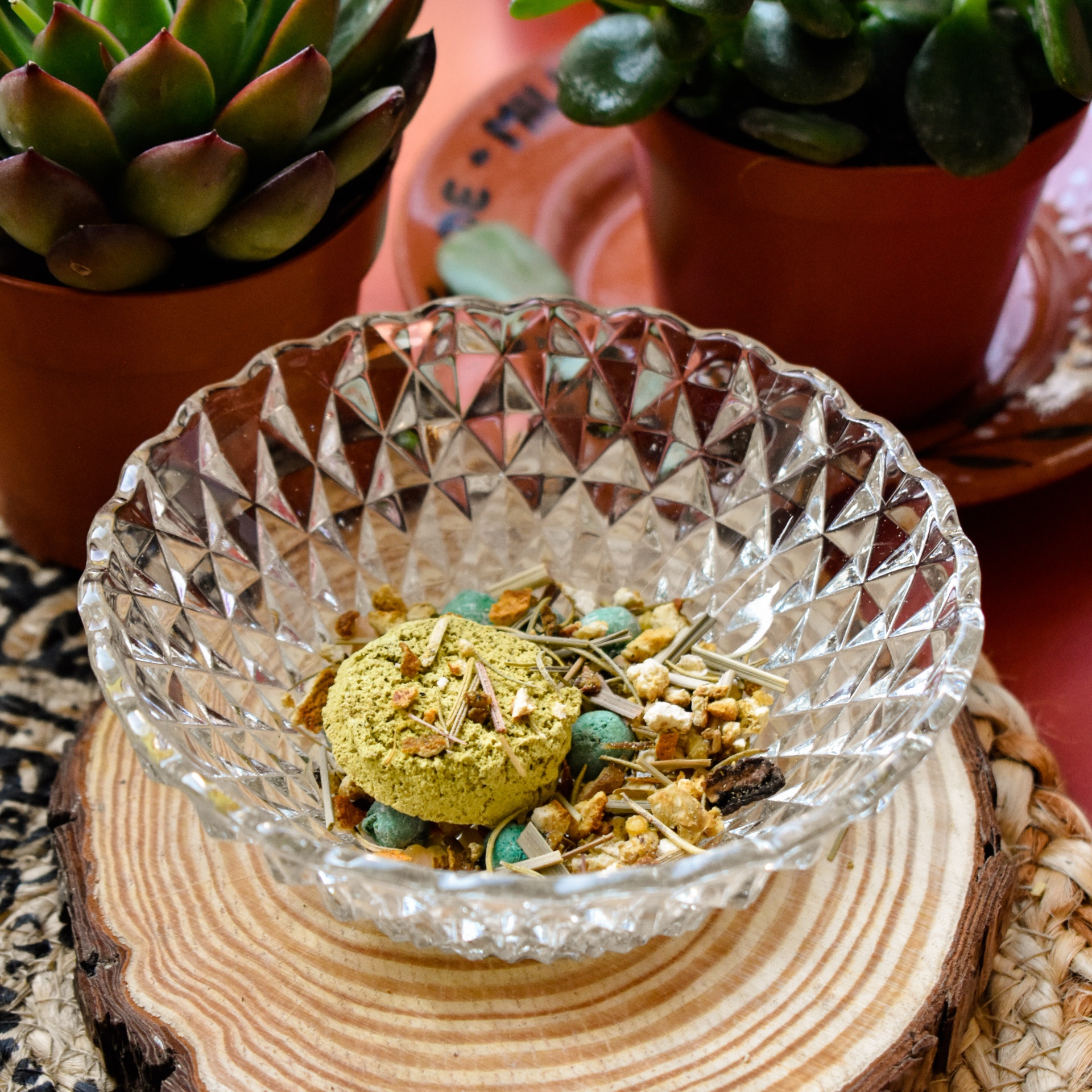 Materiais: ervas, carvão vegetal, resinas naturais, óleos essenciais e aglutinantes naturais.